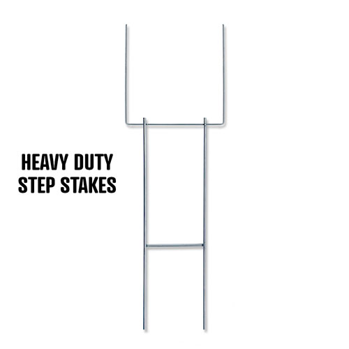 Our Step Stakes are the perfect way to keep your signs upright and visible. They are made of high-quality materials and are designed to withstand even the most severe weather conditions. Choose from either standard or heavy duty versions both accommodate 4mm. corrugated plastic sign panels. Flutes must run vertical in relationship to your graphics.